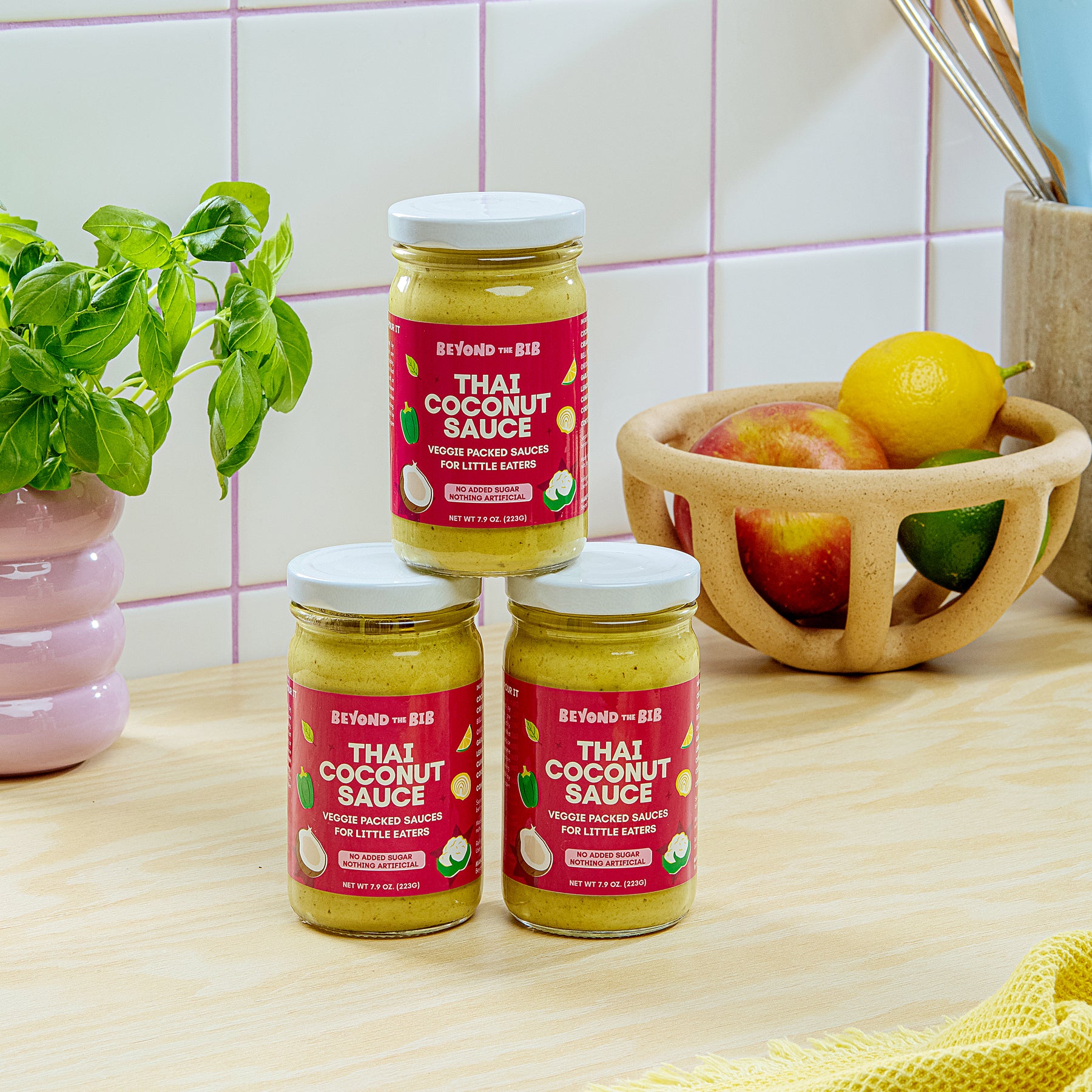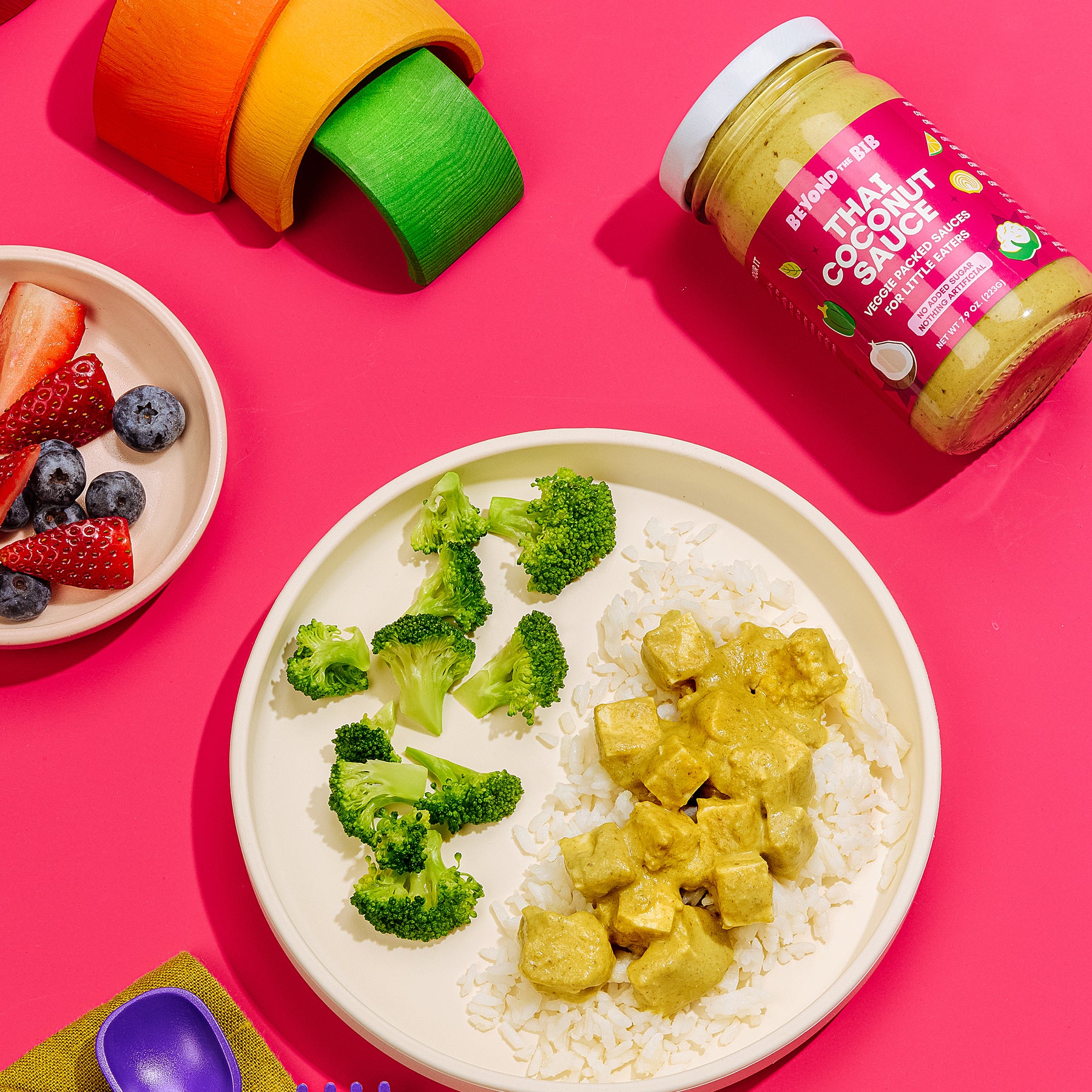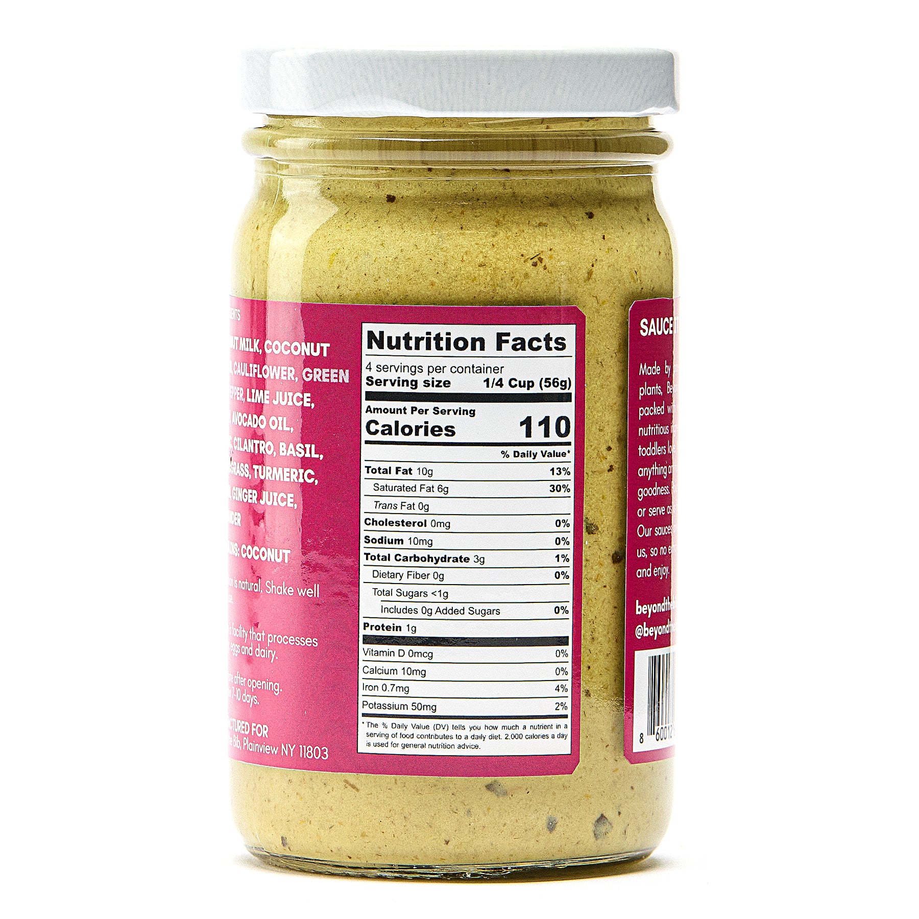 This mild Green Coconut Sauce is the perfect way to introduce your little one to the exciting world of global tastes. We've done all the hard work by sourcing authentic herbs and spices like lemongrass and ginger, and blending it with creamy coconut milk. The result is an approachable, dialed back Thai flavor without the additives, preservatives, or sugar that typically come with the takeout menu. For a quick meal, simmer in diced tofu or chicken, cooked rice and sliced mushrooms.